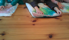 We did not use paint, but we did plastic bags with shaving cream and food coloring. We put two colors in each bag so they could see what color it became. We of course did not tape ours down and would strongly recommend, especially if you have little ones, to Tape the bag DOWN! We had a bit of shaving cream and food coloring spilling out as they got squished around but they still had fun!